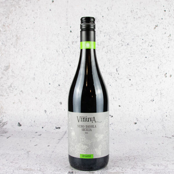 The Vinuva Nero d’Avola is a mouth-watering organic red wine that is a true expression of Sicily, a region blessed with consistent bright sunshine. Nero d’Avola is native to the island and grown on rich calcareous soils, which contributes to the wine’s purity and elegance.