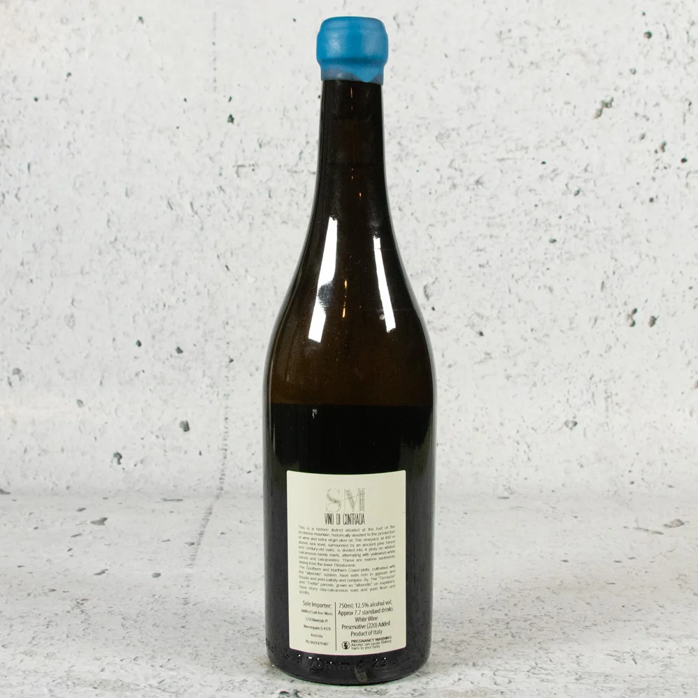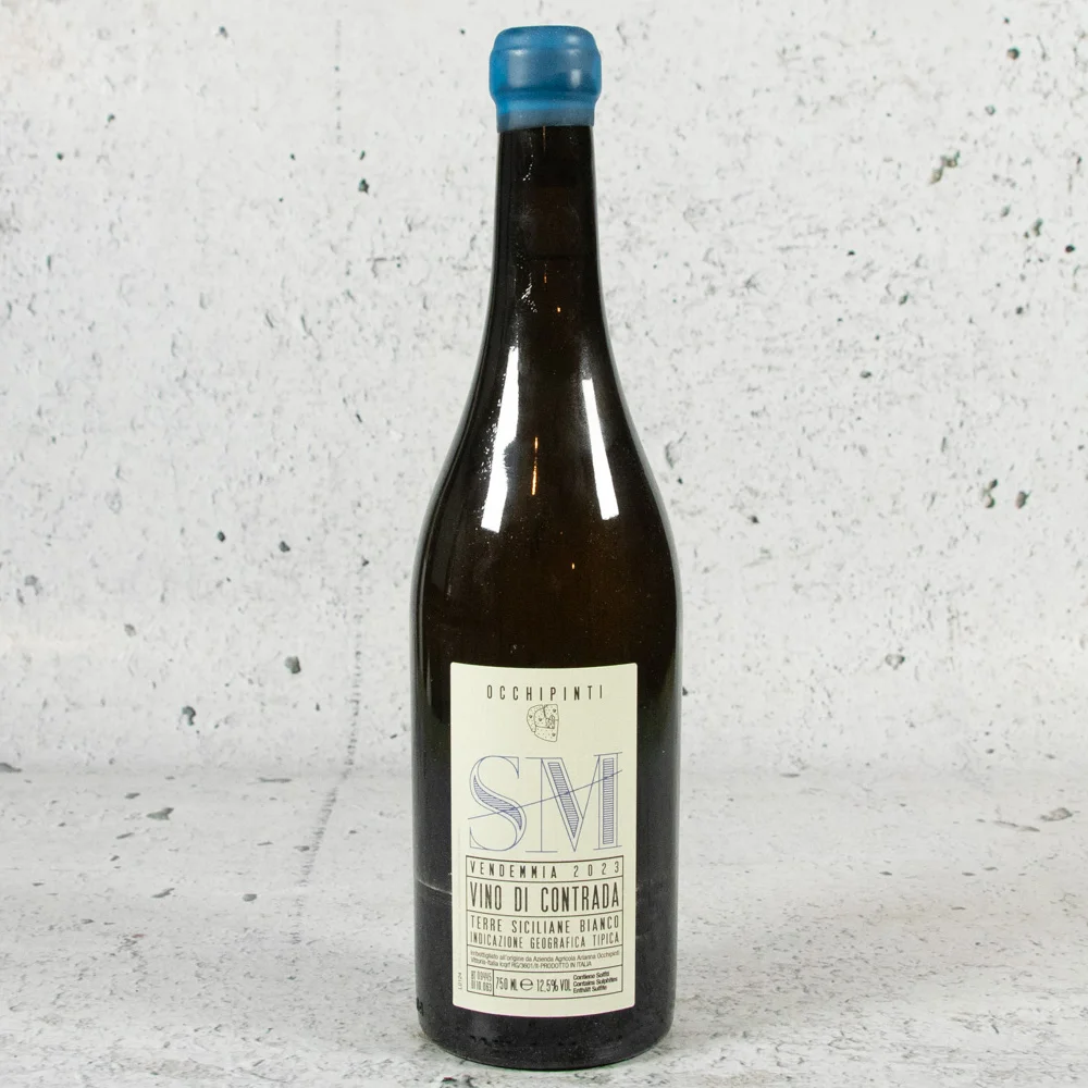 Some years ago, my passion always growing for white wines and my desire to produce white wine to recount the limestone and the sense of the rock of the Iblei Mounts, I started to search for a place where to plant a new vineyard. In 2016 after some research, I found Santa Margherita, a contrada I fell in love with, at the base at the foot of Chiaramonte Gulfi, an ancient village on the Iblei Mounts. The vineyard, sited at 490 meters on the level of the sea, surrounded by pine forest, oaks and secular olive trees, is divided in 4 parcels on sandy calcareous marl of whitish colour, with sand and yellowish white calcarenites. They are sediments that comes from sea since Pleistocene period. The parcels Costa Sud and Costa Nord, with a training system method called alberello, they have rich soil about gypsum and fossils and give complexity and salinity. The parcels Terrazza and Trefile, with a training system, alberello growing on trellis, are rich about limestone and give more pulp and acidity. The variety? The Grillo. White grape variety, with great personality, very diffused in west Sicily and since last ten years in East Sicily too with historic name of Riddu. Probably it is a cross of Zibibbo and Catarratto. It has a good aromatic intensity, that remind you of typical citrus notes accompanied by spicy vegetal notes and white flowers. It has a good balance between the alcoholic sensation and the acidity, and it is particularly savory. In this way, I would like that this variety be considered an intermediary, a tool available to the terroir and not the aim. The wine, after a short maceration of 48 hours, ferments spontaneously in concrete and oval Austrian oak barrel, in which it has aged for 12 months. – Producer’s Notes