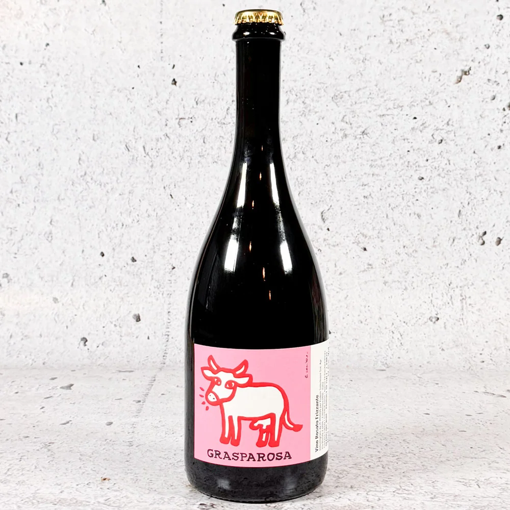 Grasparosa is a playful take on grasparossa, one of the most structured and intense types of Lambrusco. After a short maceration, the grapes are harvested in September, rested in cement tanks, and then re-fermented with must in April — the result is a dark rosé that’s pure joy.