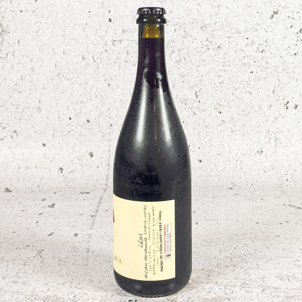 2024 Lilies Old Vine Grenache. McLaren Flat, planted in the 1940s, deep white sand on clay. Farmed organically by Fiona Wood, owned by Karen and Peter Cahill. Long maceration on skins, pressed to barrel. Free-run only. Big, bold and commanding attention, ripe red fruits and spice, big pallet weight but without extraction. Wow.