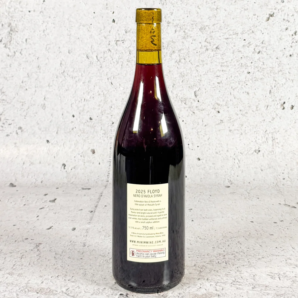 Floyd is a chilled red or luscious rose, all about the enjoyment of Nero D’Avola in its most youthful and vibrant form, this year joined with a small portion of early picked Metcalfe Syrah. Nero, grown by Chalmers vineyard in Northern Heathcote, Syrah grown by us. To capture all that vital young energy we pick early and ferment only a small amount of skins in firmly pressed Nero rose juice to allow acid to remain fresh, fruit to jump and skin tannin to play a grounding roll to all the excitement. Floyd is carefully racked in early Spring, bottled with a small sulphur addition.