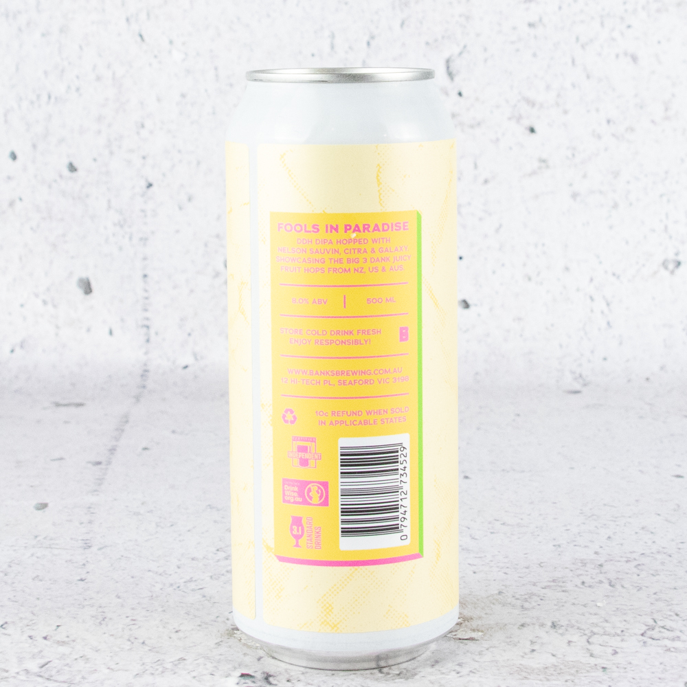 DDH DIPA Hopped with NELSON SAUVIN, CITRA & GALAXY. It’s all Juice, Juice, Juice. Picture a pineapple stepping into a bowl of mango, melon, passionfruit & gooseberry. Drop a pink umbrella in & make it look like a Mai Tai. – Banks Brewing