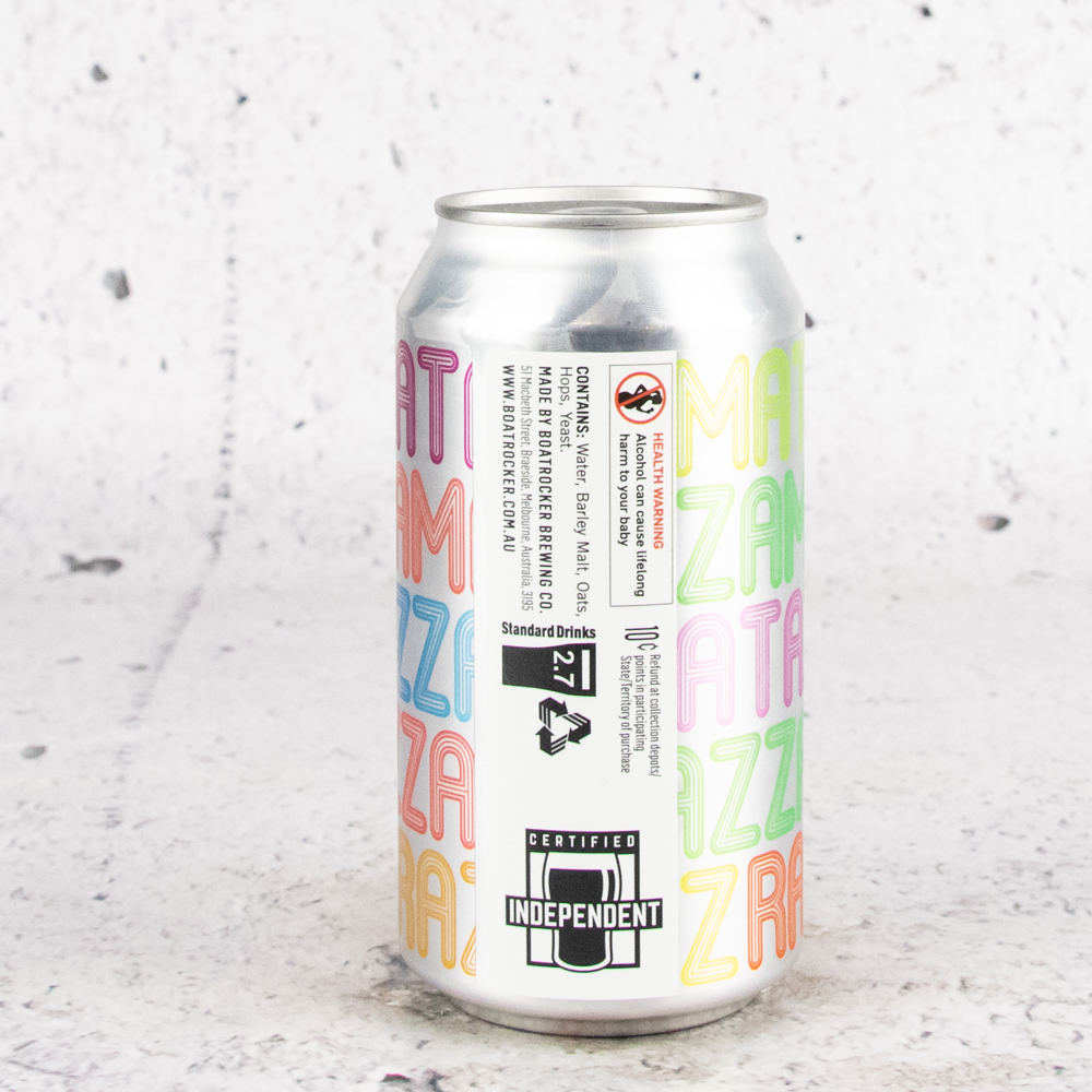 Razzamatazz is a pilsner on steroids at 9% ABV, which we aged in Chardonnay barrels to provide some woody and winey characters. Created to showcase what boatrocker does best – traditional styles, traditional techniques but with distinctive Boatrocker flair. – Boatrocker Brewers and Distillers