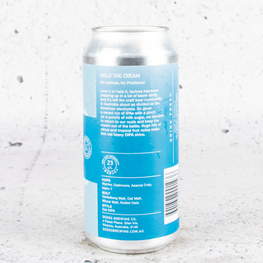Love it or hate it, lactose has been popping up in a lot of beers lately, and it’s left the craft beer community in Australia about as divided as the American electorate. So given a recent run of IPAs with a pinch (or a punch) of milk sugar, we decided to return to our roots and keep the cream out of the kettle. Huge hits of citrus and tropical fruit notes make this oat heavy DIPA shine. – Deeds Brewing