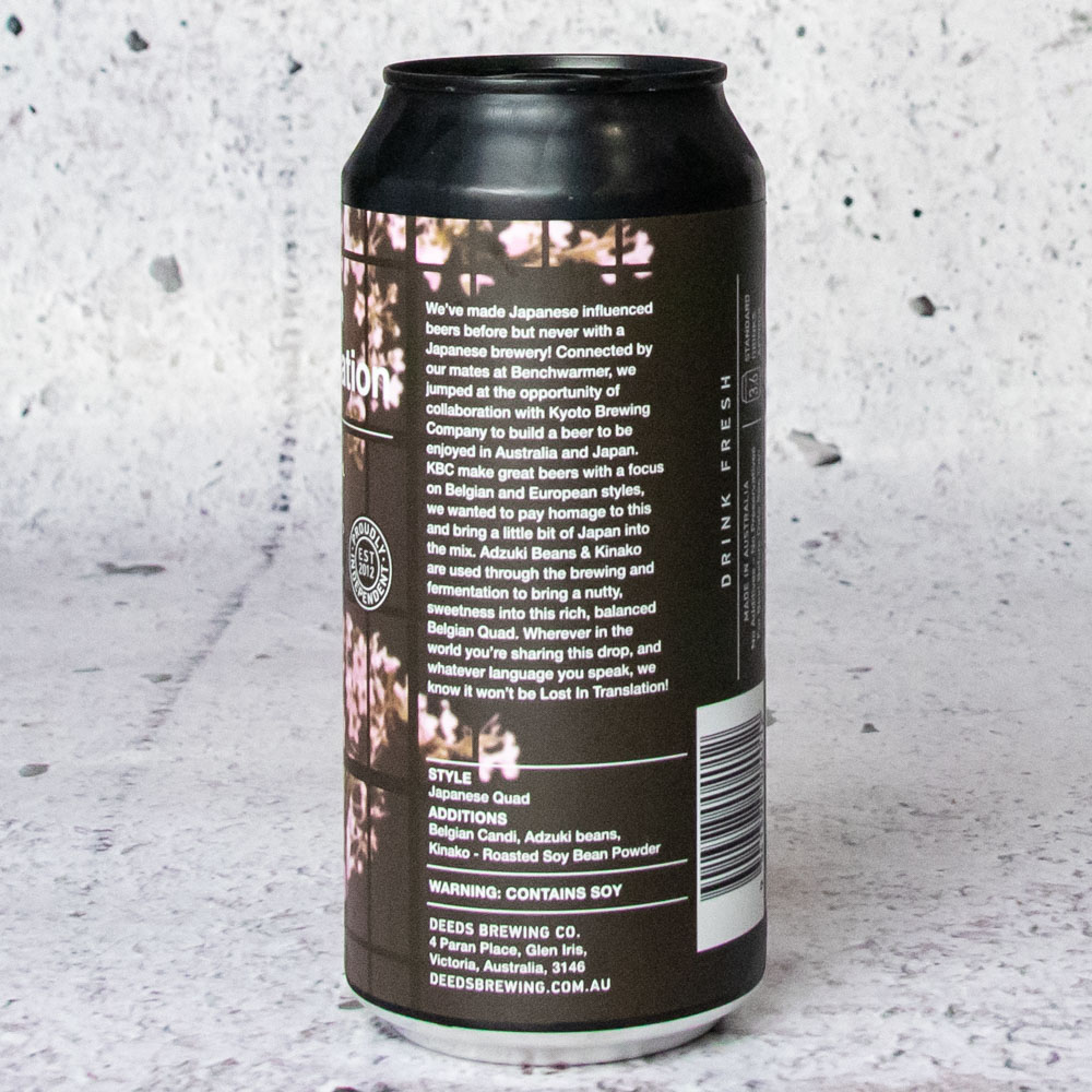 We’ve made Japanese influenced beers before but never with a Japanese brewery! Connected by our mates at Benchwarmer, we jumped at the opportunity of collaboration with Kyoto Brewing Company to build a beer to be enjoyed in Australia and Japan. KBC make great beers with a focus on Belgian and European styles, we wanted to pay homage to this and bring a little bit of Japan into the mix. Adzuki Beans & Kinako are used through the brewing and fermentation to bring a nutty, sweetness into this rich, balanced Belgian Quad. Wherever in the world you’re sharing this drop, and whatever language you speak, we know it won’t be Lost In Translation!