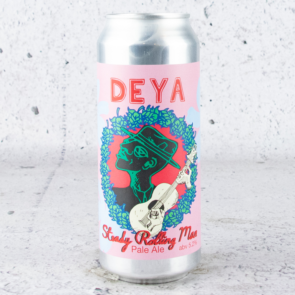 Our pale ale. Inspired by the ridiculously tasty hoppy beers we fell for, we got brewing our own versions, over and over again, while listening to the blues greats. The heady concoction of old-time blues records and juicy American hops transfixed us from the start and the rolling man was born in these sessions! Incredibly soft and delicate with intense tropical fruit hop aromatics and saturation, this is our vision of the perfect pale ale. – Deya Brewing