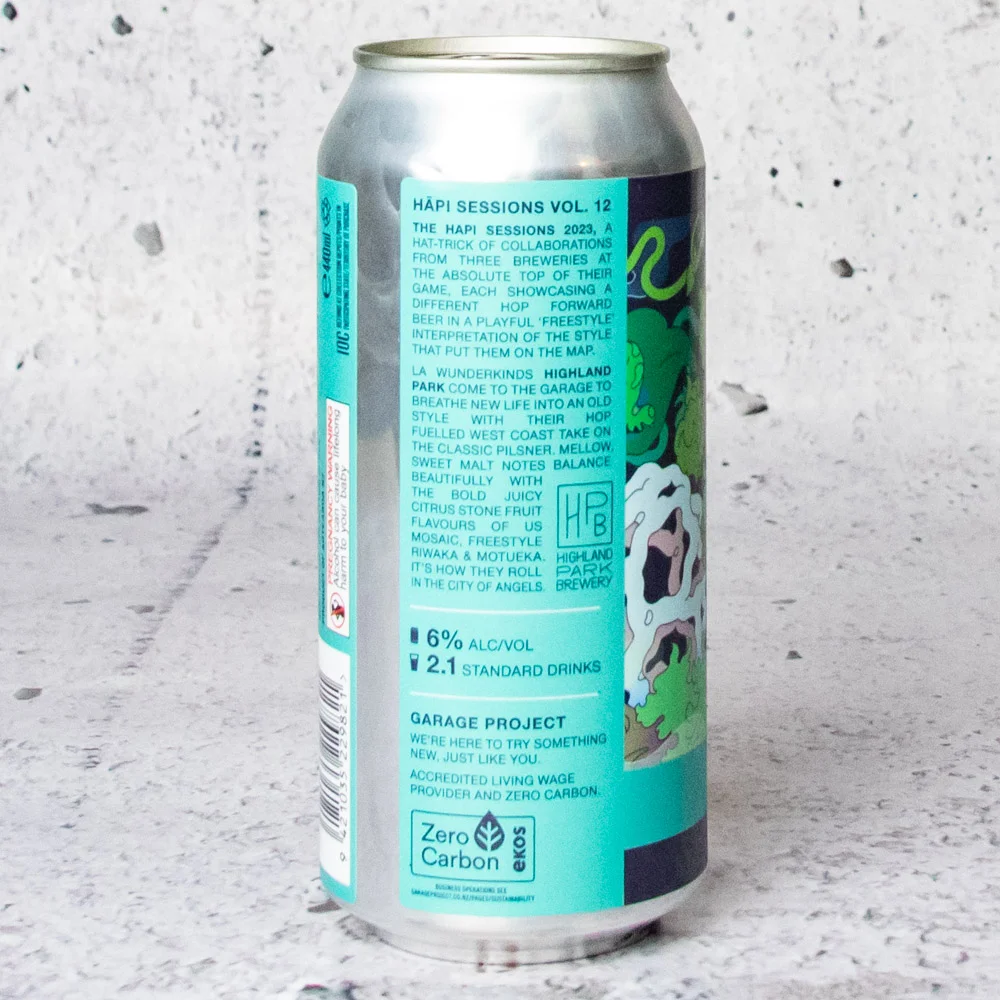 The Hapi Session series sees Garage Project teaming up with breweries at the top of their game during the yearly ‘Hapi Synposium’ hosted by Garage Project and freestyle hop farms. Immense World sees the Garage Project team collaborating with Los Angeles based Highland Park to make a west coast take on a classic pilsner. Utilising freestyle Riwaka and Motueka as well as US Mosaic for their bold stone fruit and juicy citrus characteristics, as well as traditional pale german malts for a mellow and slightly sweet base to help meld everything together.