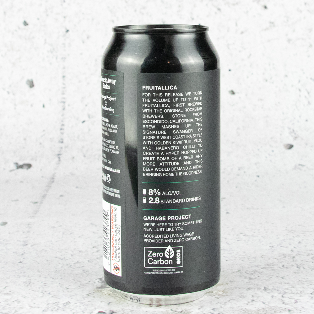 Let’s turn the volume up to 11, enter FRUITALLICA! 🤘🤯 First brewed with the original rockstar brewers, @stonebrewing from Escondido, California. This brew mashes up the signature swagger of Stone’s West Coast IPA style with golden kiwifruit, yuzu and habanero chilli to create a hyper unique hopped up 8% fruit bomb of a beer. Much much loved when released in the US back in 2017, now rebrewed and available in NZ – Garage Project