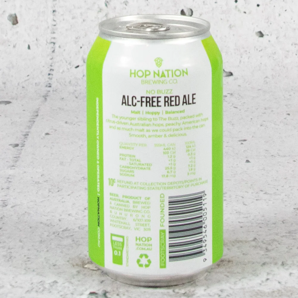 No Buzz is the little sibling to the well known Buzz American Red Ale by our good friends at Hop Nation. This Imperial Red IPA takes everything you love from the award-winning Buzz and amplifies it with more hops, more malt, and more flavour, but none of the alcohol.