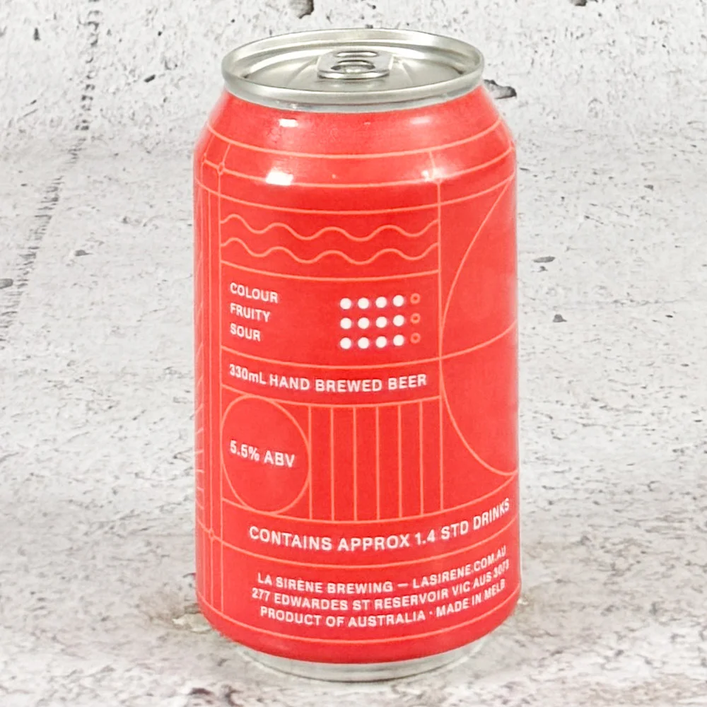 The Farmhouse red is a Hybrid Farmhouse-style red ale that has been naturally soured using our indigenous wild bacteria living within the brewery’s walls. This natural bacterial contribution along with a generous malt profile whilst residing in premium French oak Barrels provides a great backbone of malt sweetness coupled with an assertive natural acidity that together delivers a smooth yet complex mouthfeel. In conjunction to this, we fermented it with fresh organic Hibiscus whole flowers & rose petals grown in the iconic Byron Bay region of Australia that gives this beer a lively refreshment with a sense of place & season. – La Sirene