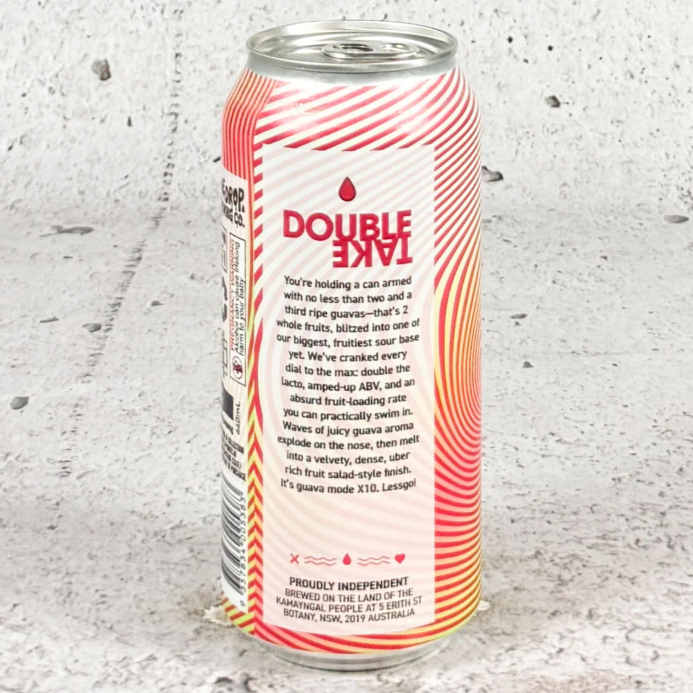 You’re holding a can armed with no less than two and a third ripe guavas—that’s 2⅓ whole fruits, blitzed into one of our biggest, fruitiest sour base yet. We’ve cranked every dial to the max: double the lacto, amped-up ABV, and an absurd fruit-loading rate you can practically swim in . Waves of juicy guava aroma explode on the nose, then melt into a velvety, dense, uber rich fruit salad-style finish. It’s guava mode X 10. Lessgo! – One Drop
