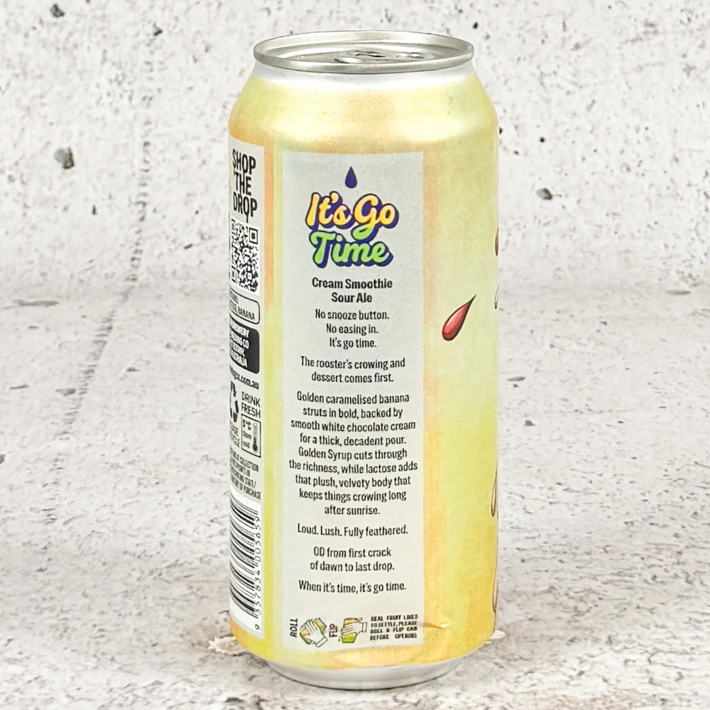 Golden caramelised banana struts in bold, backed by smooth white chocolate cream for a thick, decadent pour. Golden Syrup cuts through the richness, while lactose adds that plush, velvety body that keeps things crowing long after sunrise. – One Drop