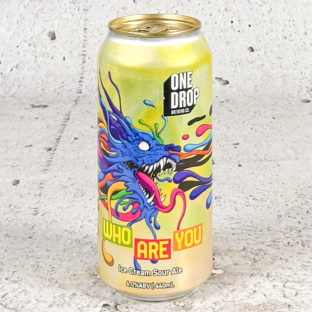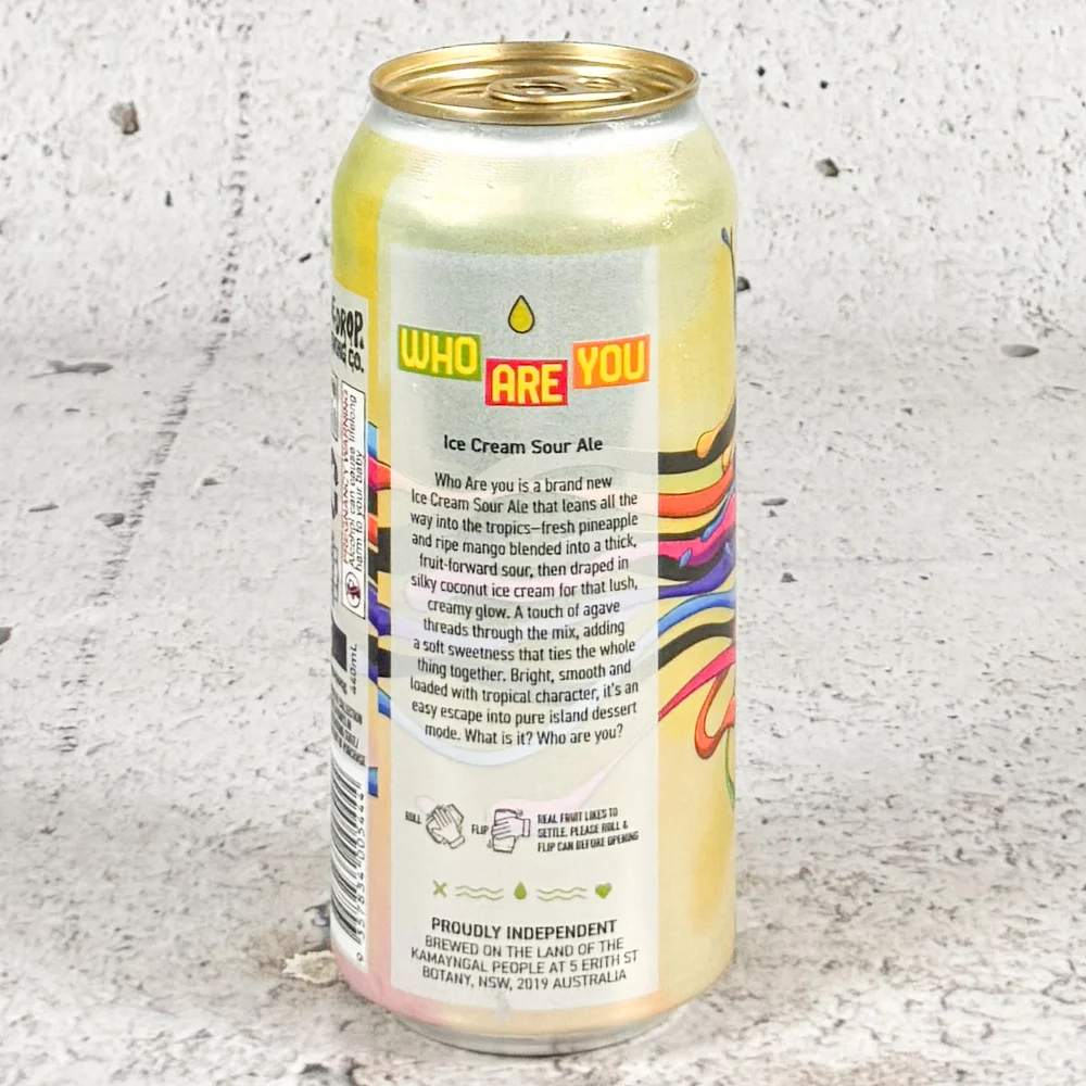 Who Are you is a brand new Ice Cream Sour Ale that leans all the way into the tropics—fresh pineapple and ripe mango blended into a thick, fruit-forward sour, then draped in silky coconut ice cream for that lush, creamy glow. A touch of agave threads through the mix, adding a soft sweetness that ties the whole thing together. Bright, smooth and loaded with tropical character, it’s an easy escape into pure island dessert mode. What is it? Who are you? – One Drop