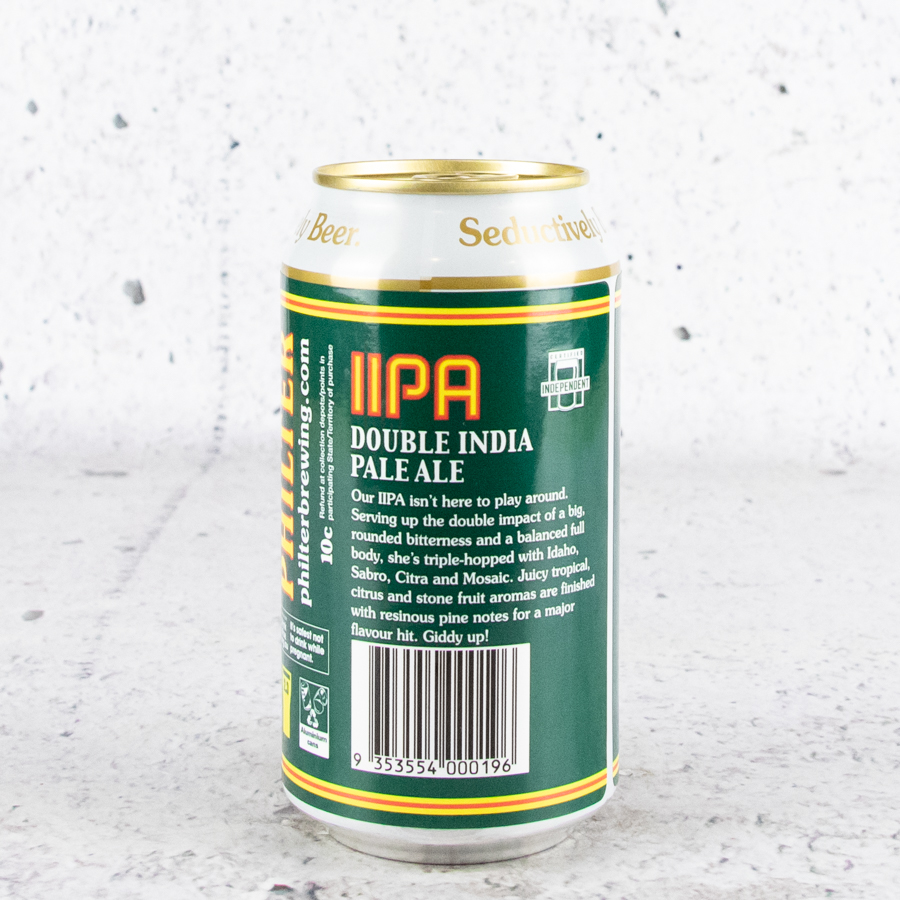 Our IIPA isn’t here to play around. Serving up the double impact of a big, rounded bitterness and a balanced full body, she’s triple-hopped with Idaho, Sabro, Citra and Mosaic. Juicy tropical, citrus and stone fruit aromas are finished with resinous pine notes for a major flavour hit. Giddy up! – Philter Brewing
