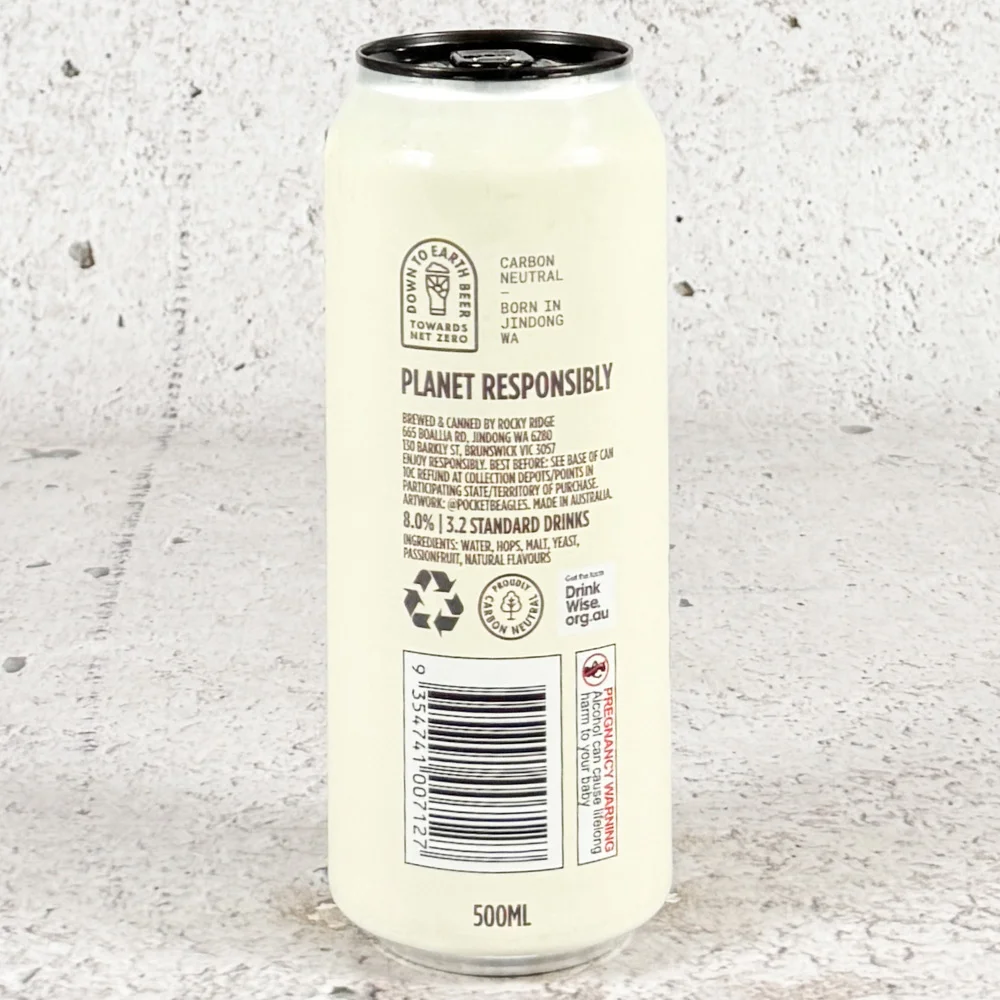 Brewed on a crisp malt base of Certified Sustainable Pilsner Malt, Wheat Malt, and Chit Malt, this Imperial Passionfruit Berliner is a bold twist on a classic. Bright, tart, and juicy with passionfruit purée and Skyfarm Passionfruit Abstrax, it stays true to the Berliner style while cranking the fruit intensity and ABV up to legendary levels. Subtle Tetrahop adds a delicate balancing note, keeping the beer lively and refreshing. – Rocky Ridge