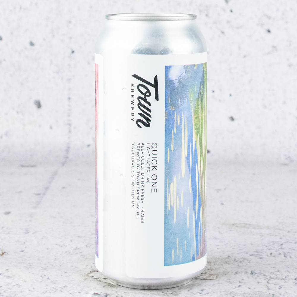 Quick One is a premium lager brewed with all German malts, our favourite Berlin lager yeast, and hopped with just the right amount of Cascade hops from the Pacific Northwestern U.S. The goal was to create a balanced and flavourful light lager that’s straightforward and delicious. The yeast provides a super clean base for both the hops and malt to express themselves in this refined yet accessible beer. – Town Brewery