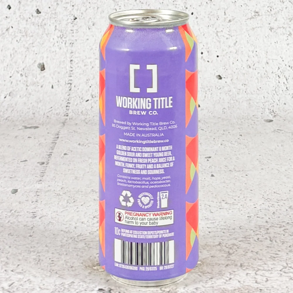 Delicate peach aromatics combine with a Brettanomyces bruxellensis funk and Acetobacter sourness. A gentle honey treacle mid palate softness the complex sourness, providing a balanced drinkability. – Working Title