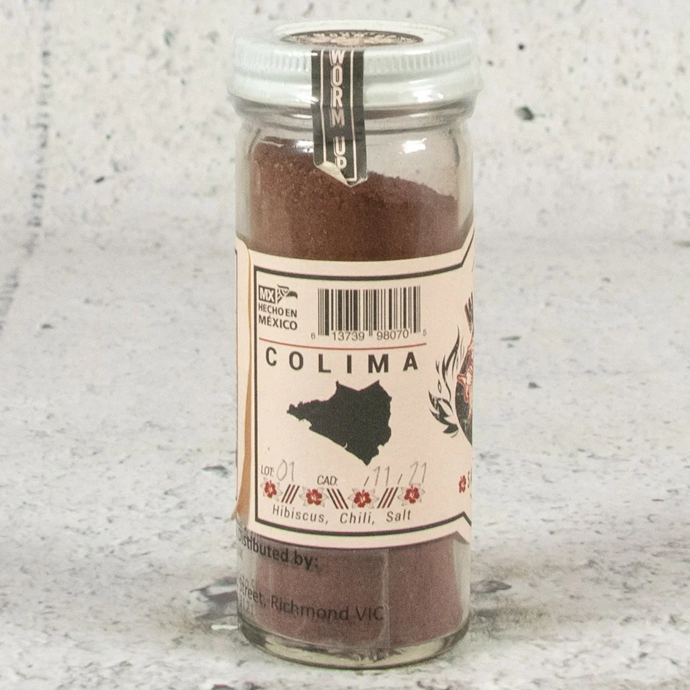 A pinch is all you need, either to salt the rim of your glass, sprinkle over your favourite fruits and food or to add as a key flavour and colour ingredient to your favourite cocktail. Woodfire cooked Hibiscus flowers, Chipotle Chillis and local sea salts combine to deliver unrivalled flavour. – Suppliers notes